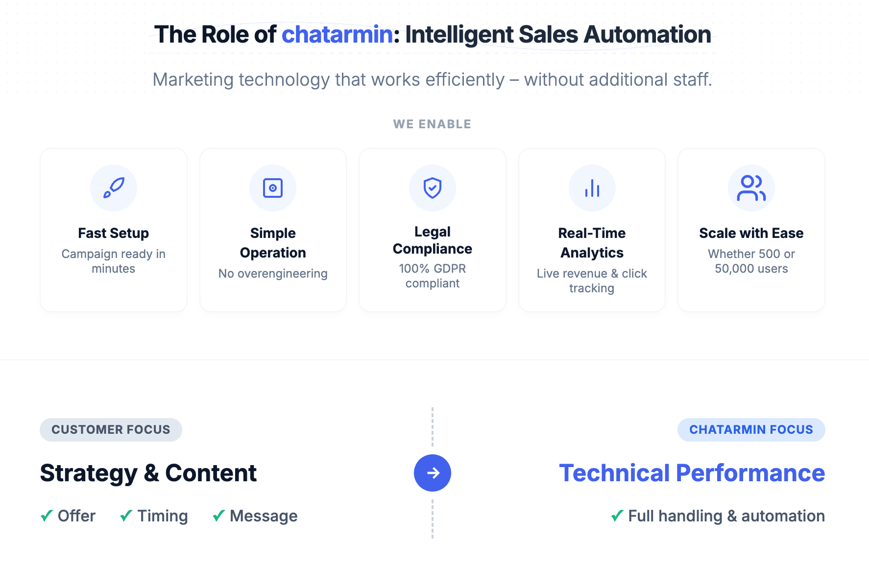 chatarmin is the leading WhatsApp marketing platform for e-commerce brands in the DACH region. With a strong focus on GDPR compliance, performance, and user experience, chatarmin enables brands to turn WhatsApp into a profitable revenue channel – without technical complexity.