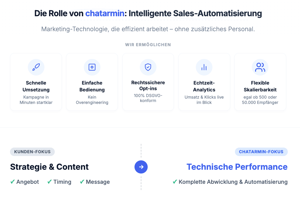 chatarmin übernahm dabei die komplette Infrastruktur: Versand, Tracking, Performance-Messung – alles aus einer Hand.
